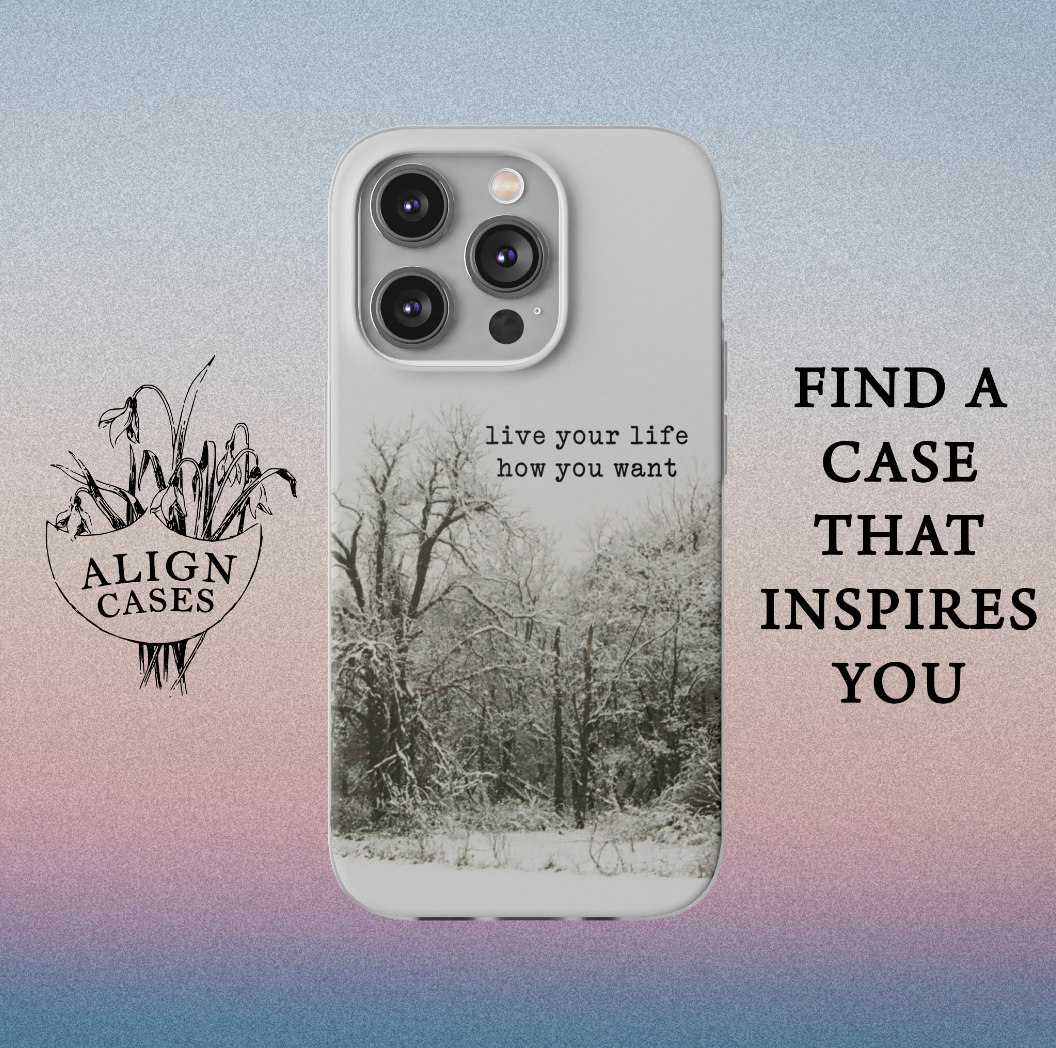 Align.Cases sells aesthetic, artist-designed phone cases featuring inspirational quotes and sunset-themed imagery. They provide durable TPU protection for smartphones, targeting users who want a blend of style and functionality.